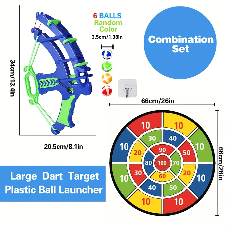 2-in-1 Combo Set – Includes dartboard, launcher, and adhesive balls