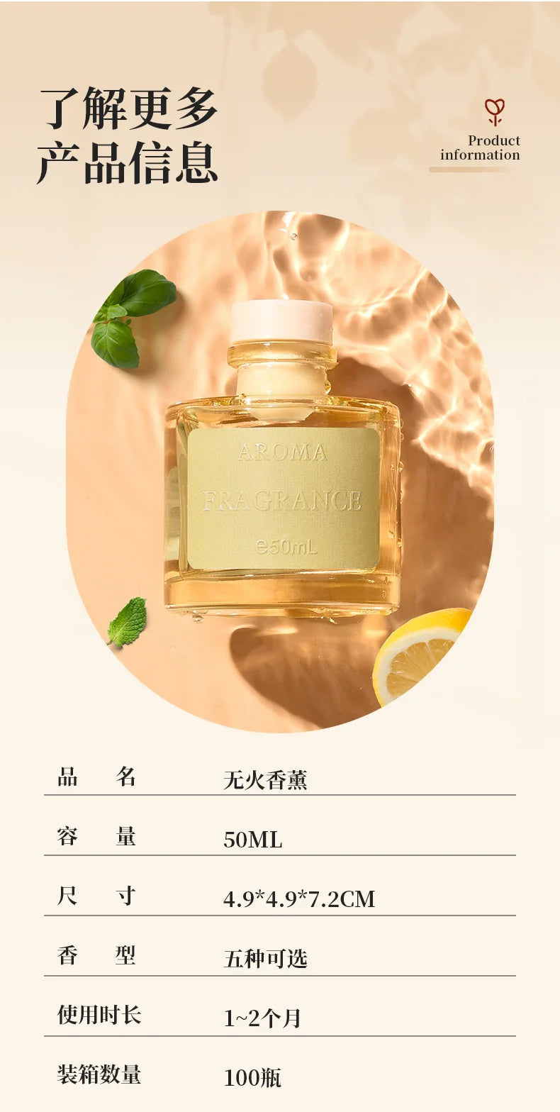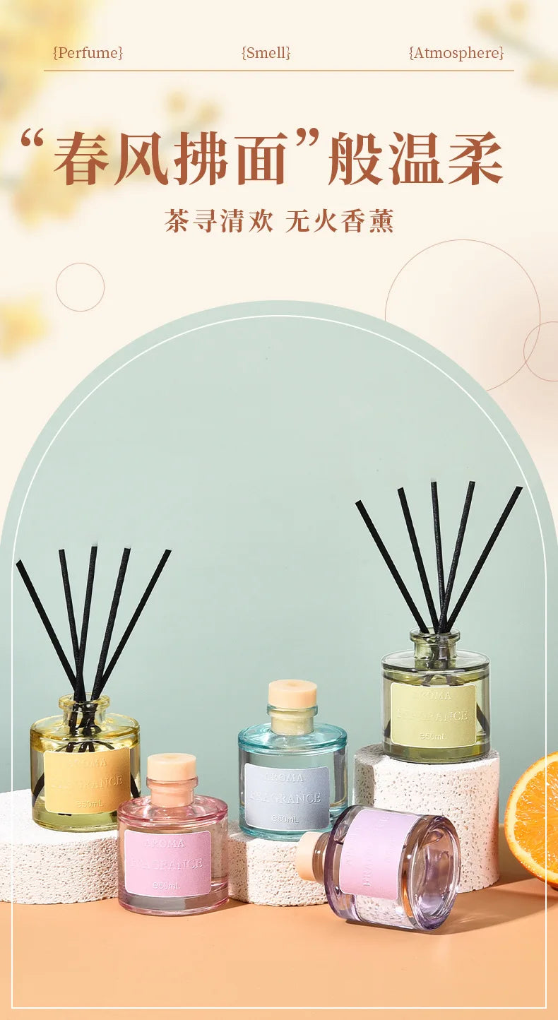 Refresh and elevate the atmosphere of your space with the 50ml Aromatic Reed Diffuser Set, designed to provide long-lasting fragrance and enhance your home or hotel decor. This elegant air freshener is perfect for creating a calming and inviting ambiance in any room, from your living room and bedroom to your toilet or office. The gentle aroma disperses evenly, filling the space with a pleasant scent that helps deodorize and purify the air.