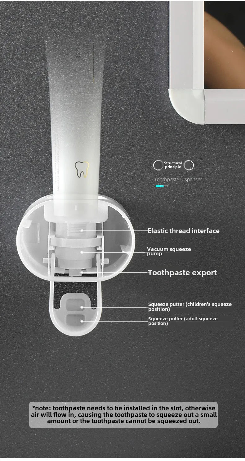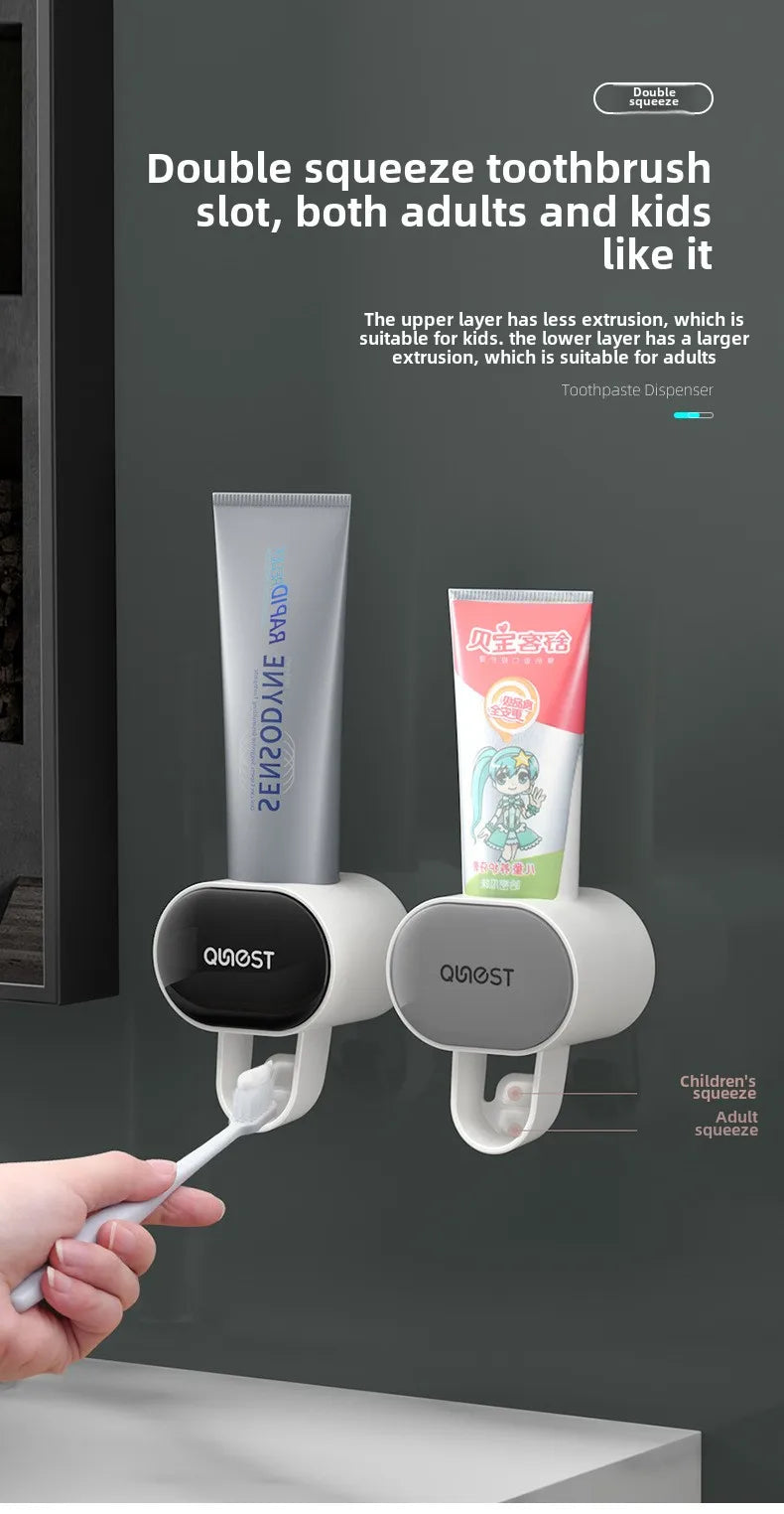 Keep your bathroom neat and organized with the Adults & Children Automatic Dust-proof Toothpaste Dispenser, a sleek and functional accessory that simplifies your daily routine. This wall-mounted stand is designed to automatically dispense toothpaste with a simple press, making it suitable for both adults and children. The automatic toothpaste dispenser eliminates the need for squeezing, ensuring the perfect amount of toothpaste every time while minimizing waste.