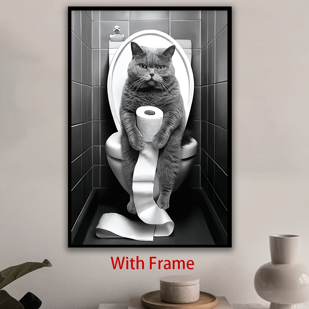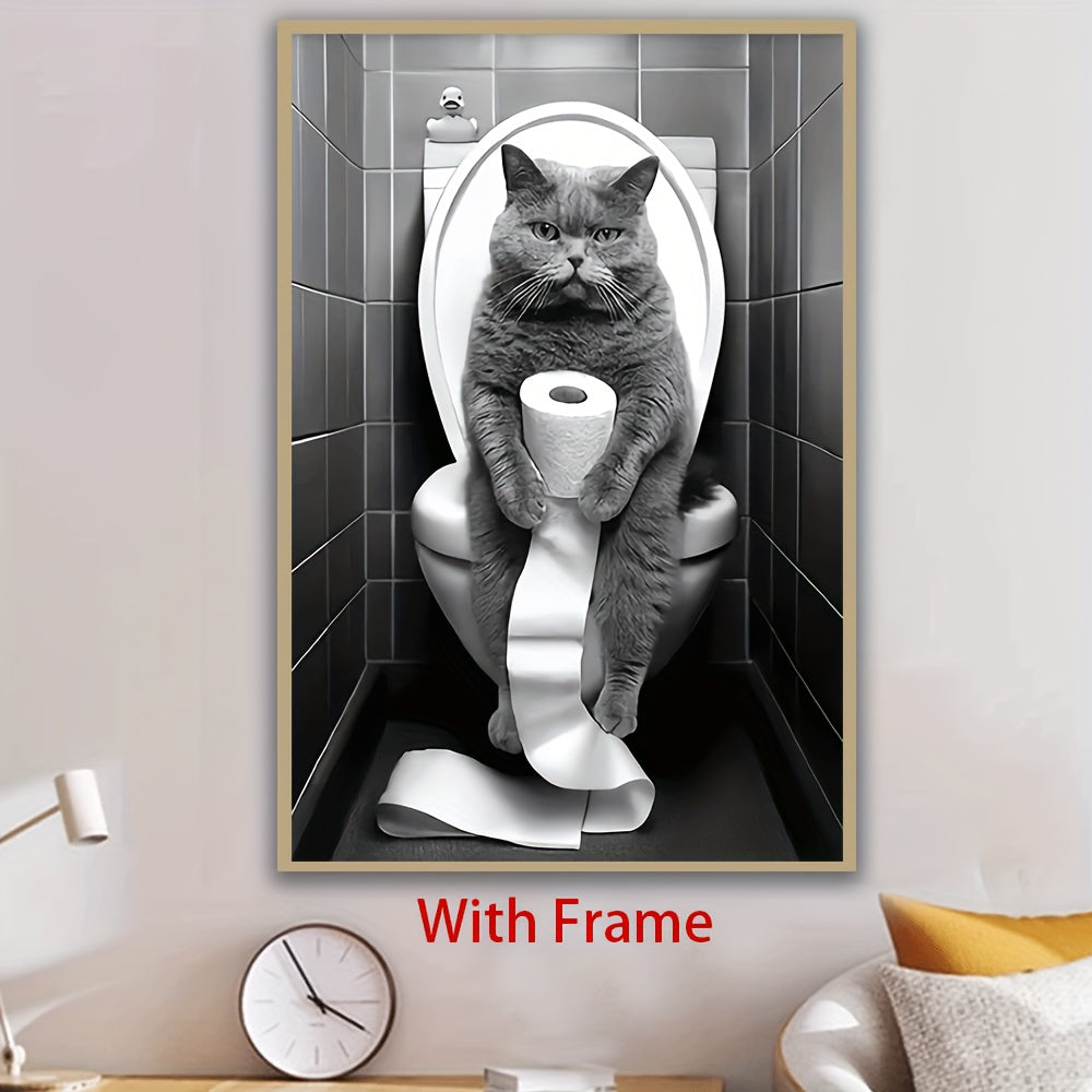 Add a playful touch to your space with the Craving Home™ Humorous Cat on Toilet Wall Art. This modern classic black and white print is perfect for bathrooms, living rooms, bedrooms, or offices, bringing humor and charm to any wall. An ideal gift for cat lovers or anyone who appreciates unique, whimsical décor.