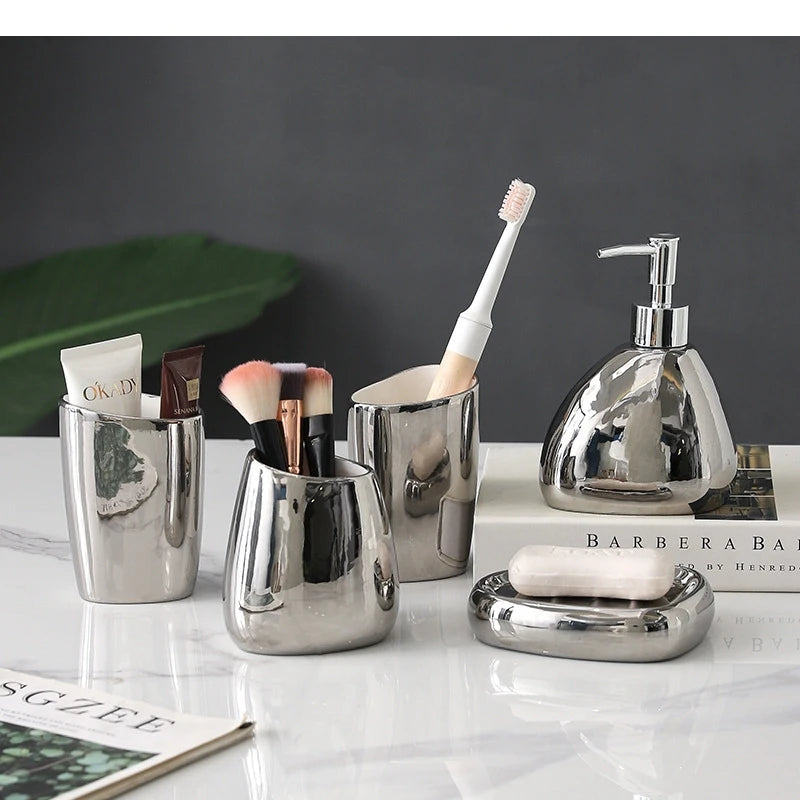 Add the Ceramic Toiletry Kit Soap Dispenser Set to your bathroom for a polished, coordinated look that combines luxury and practicality. It's a great way to bring sophistication and organization to your space.