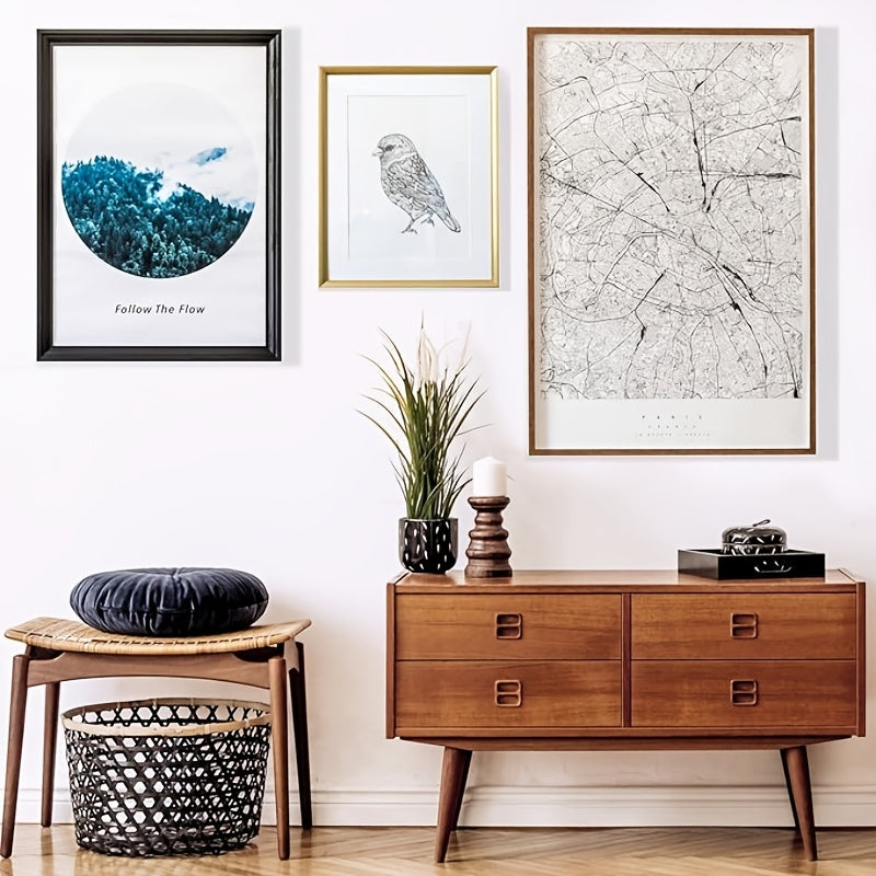 Hanging canvas wall art, framed photos, décor panels, and signs
