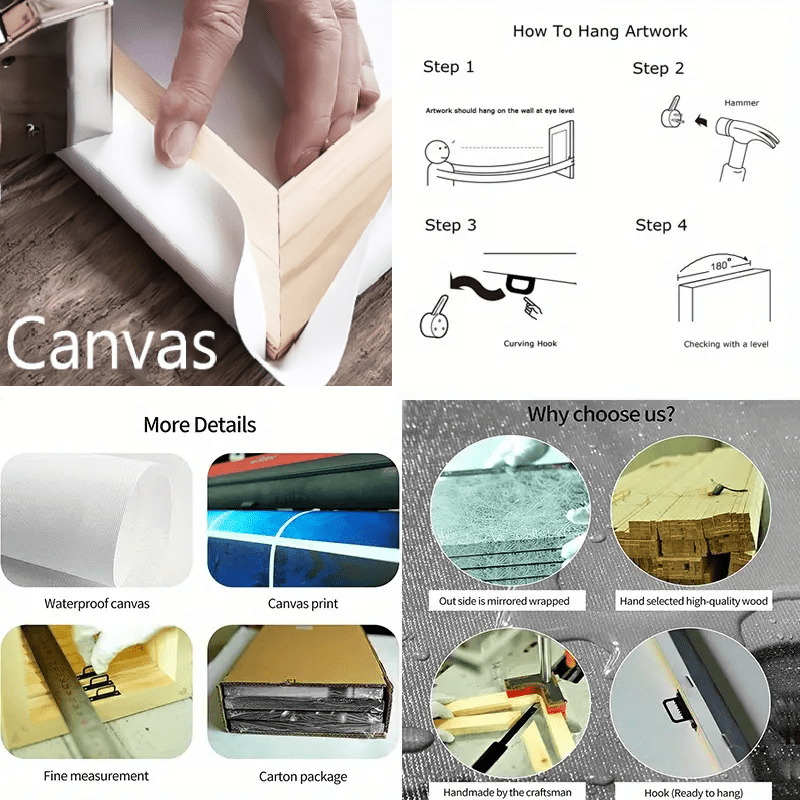Crafted with premium canvas and wood frames, each piece comes ready to hang with hooks, making it easy to display and enjoy immediately. Perfect as a thoughtful home decoration gift for family, friends, or design enthusiasts.