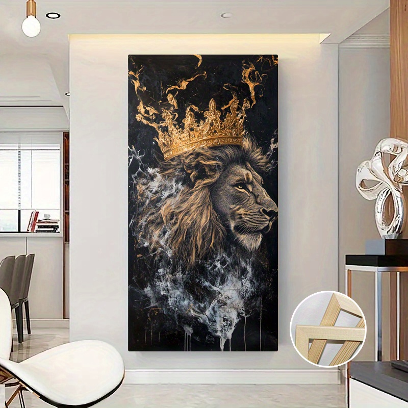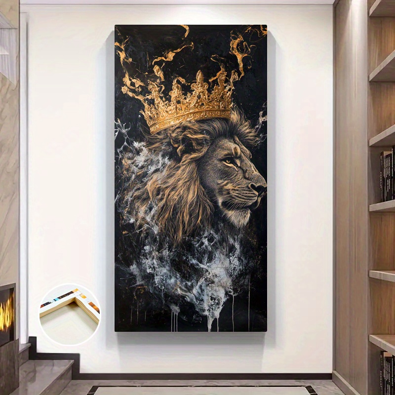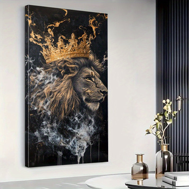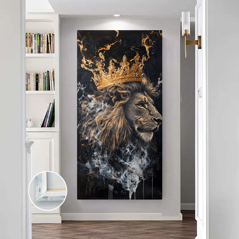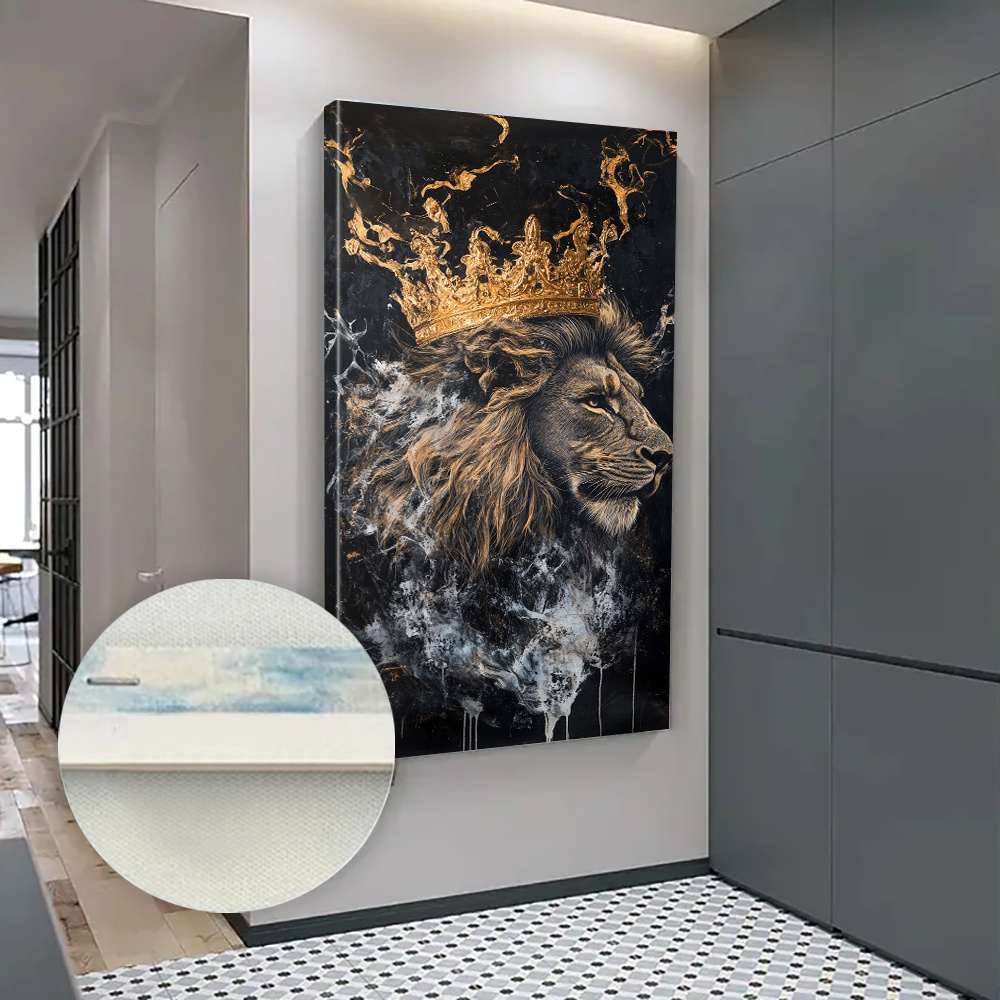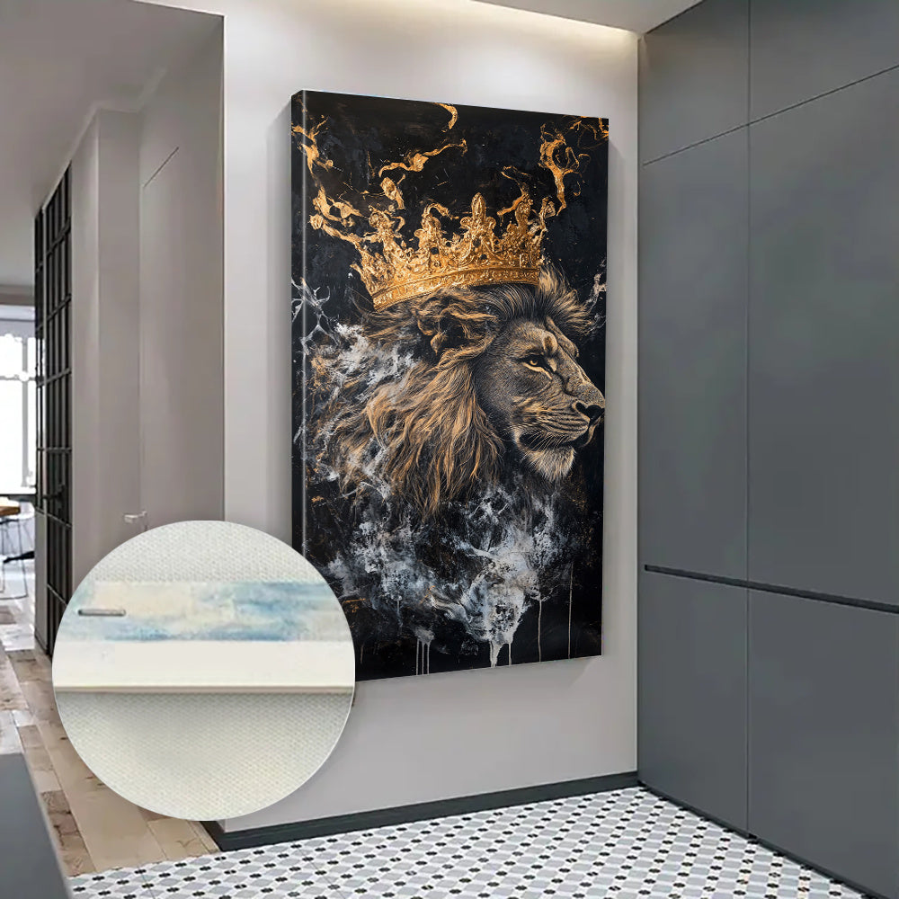 The Golden Crown Lion Canvas delivers a strong visual impact while complementing modern and classic interiors alike.