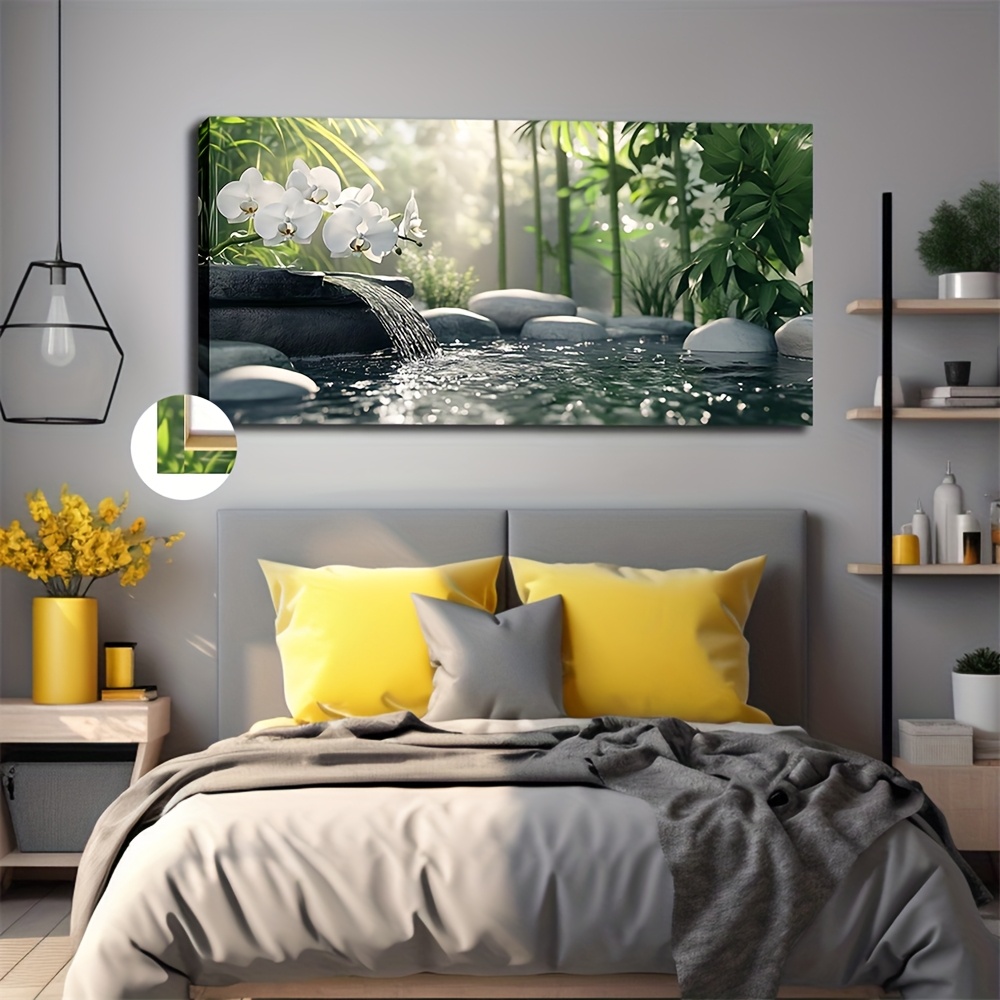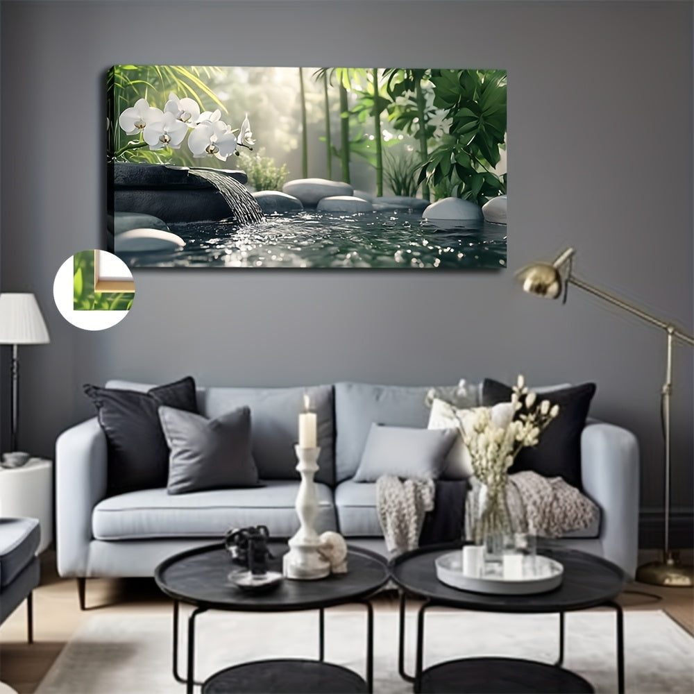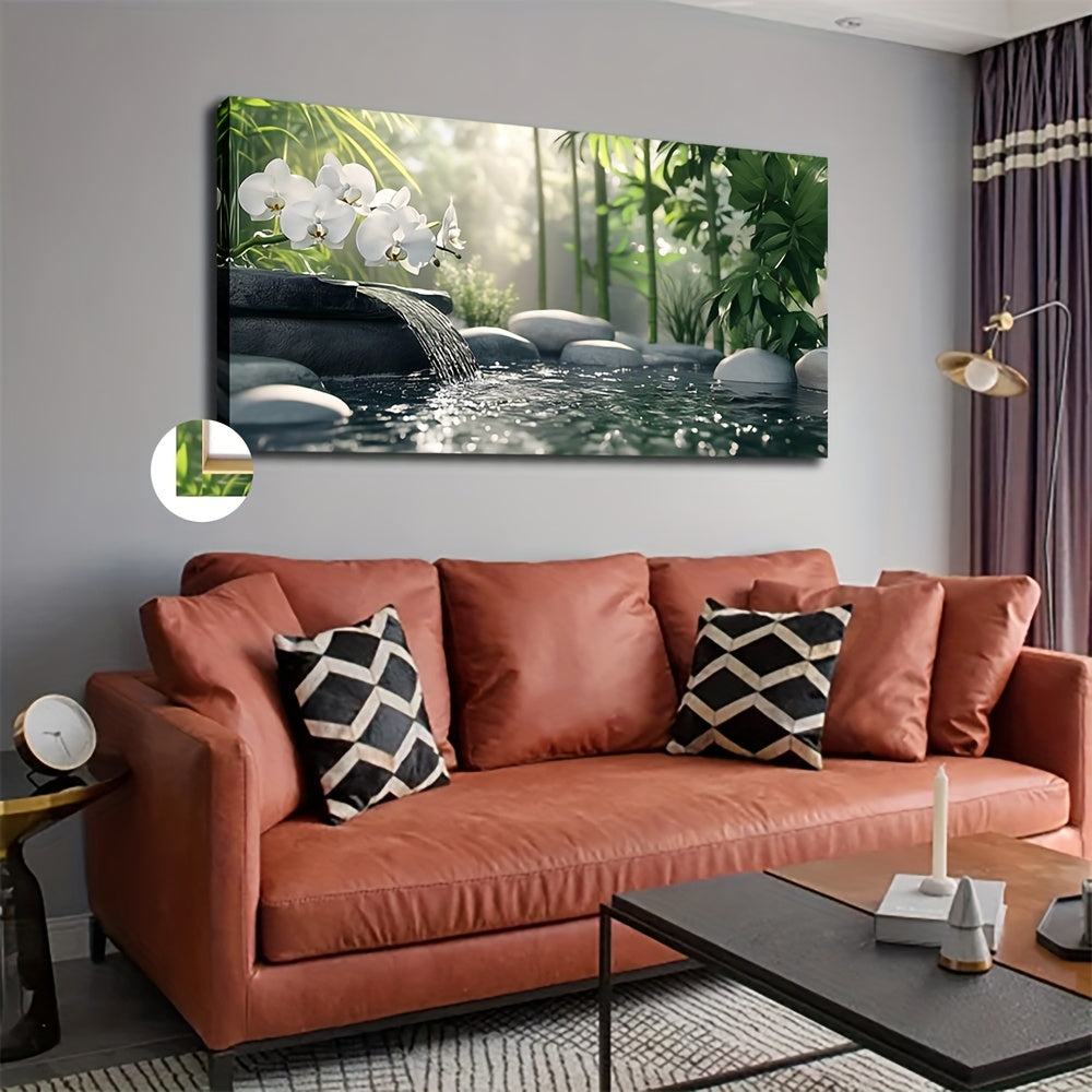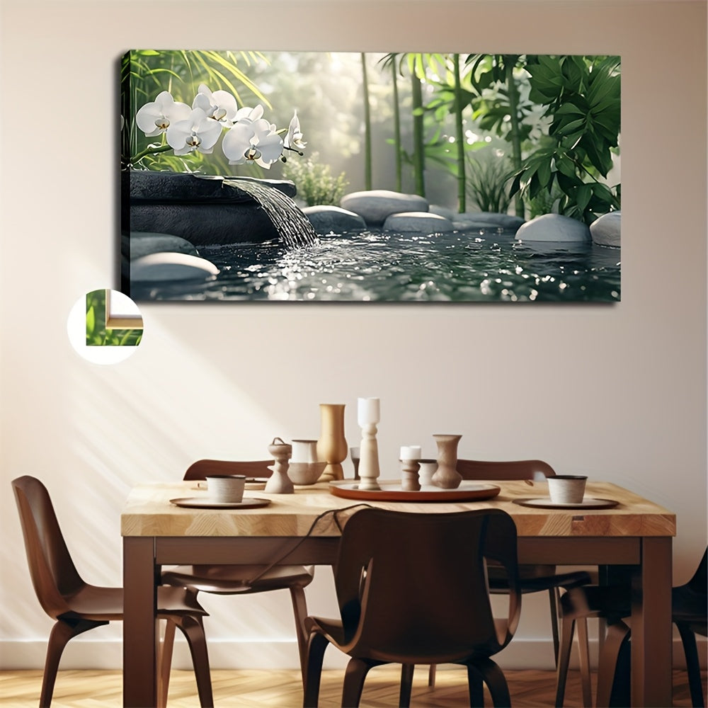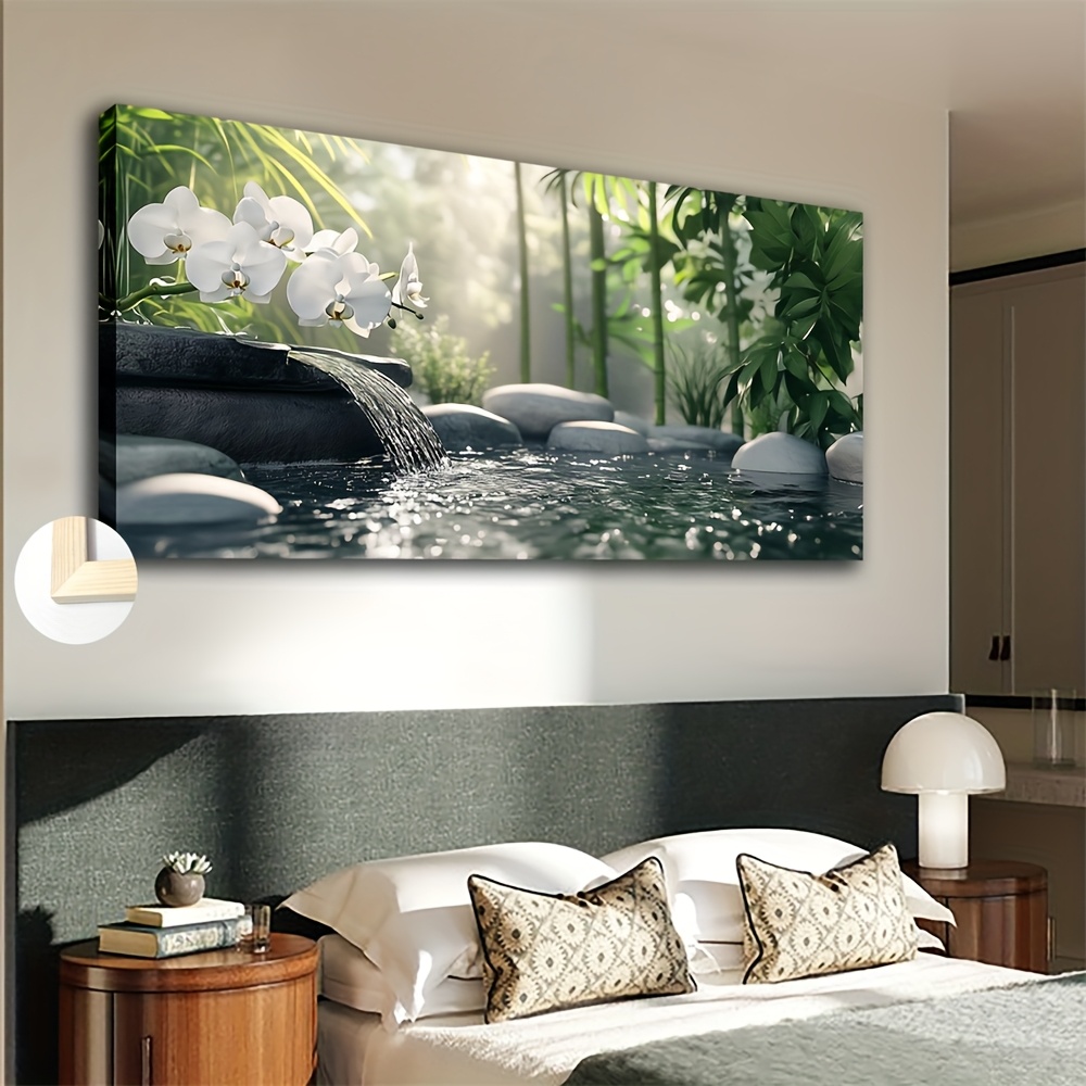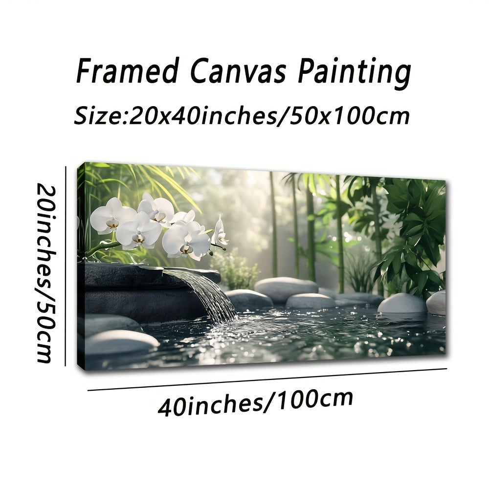 Bring harmony and elegance to your walls with the Craving Home™ Large Framed Eclectic-Style Canvas Art Print. Featuring a serene orchid garden with delicate white blossoms and lush greenery, this 20x40-inch piece adds a calming, nature-inspired aesthetic to any interior.