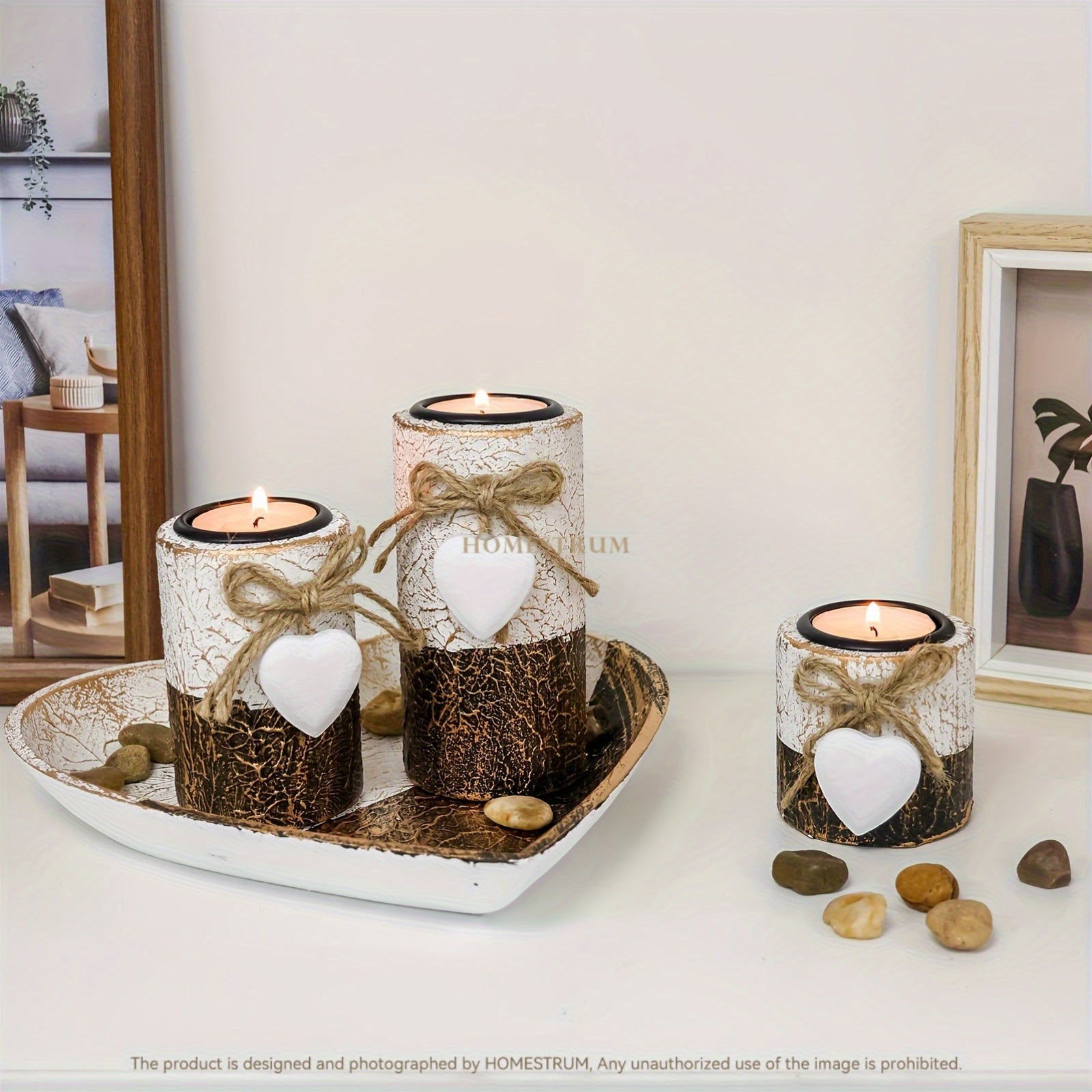 Craving Home™ Rustic Wooden Candlestick Set - Heart Tray Decor