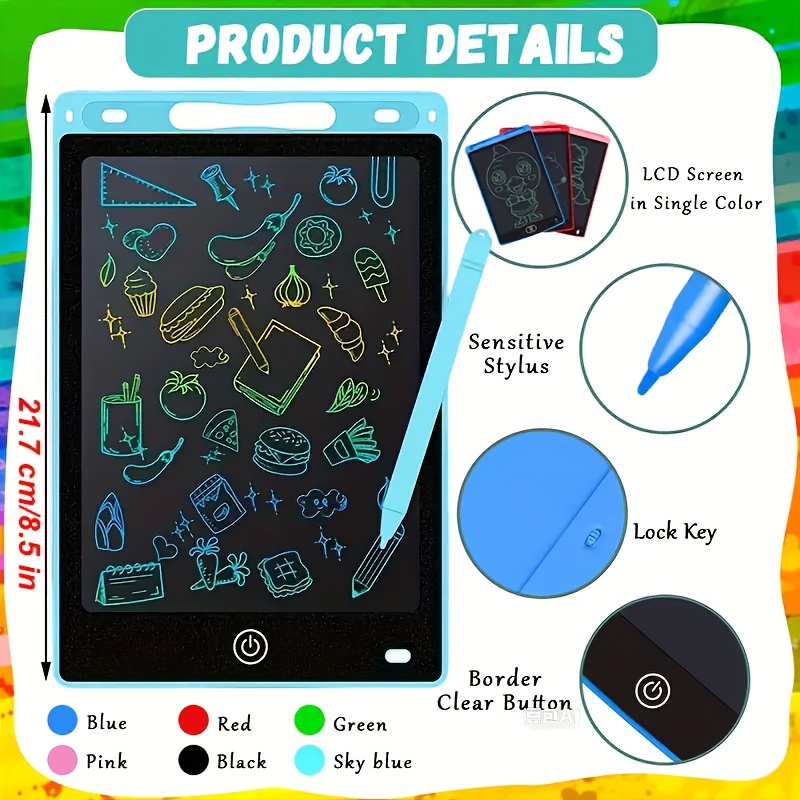 Unleash creativity and learning with the Craving Home™ 21.59cm Large LCD Writing Board! Perfect for kids aged 3+ for home or classroom use, this interactive smartboard features a vibrant color screen, stylus, and durable plastic build. Battery-powered and lightweight, it’s ideal for drawing, writing, and educational fun, helping children explore their imagination while reducing paper waste.