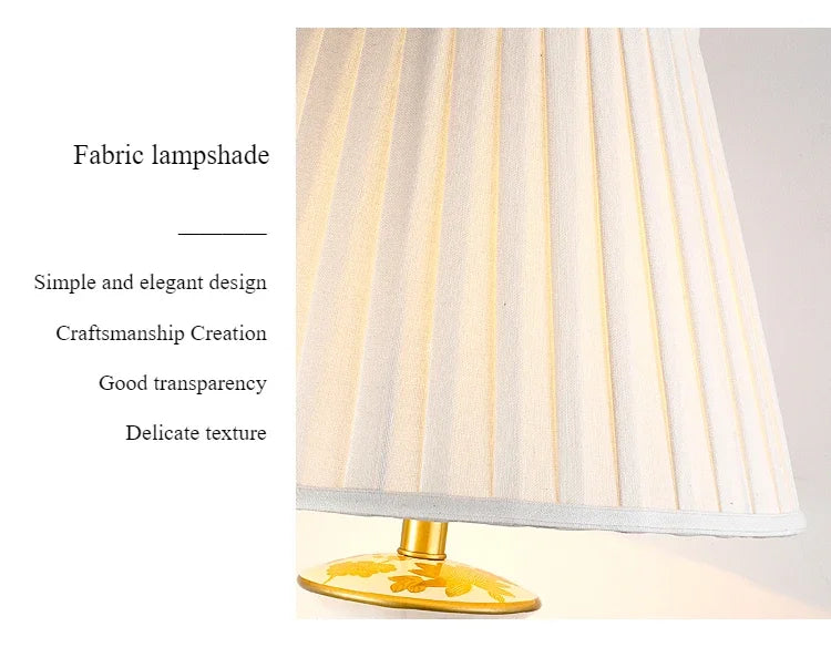 SANDYHA Luxury Classical Ceramic Desk Lamp Bedroom Decor Table Lights for Living Room Sofa Home Fabric Lampshade Indoor Lighting
