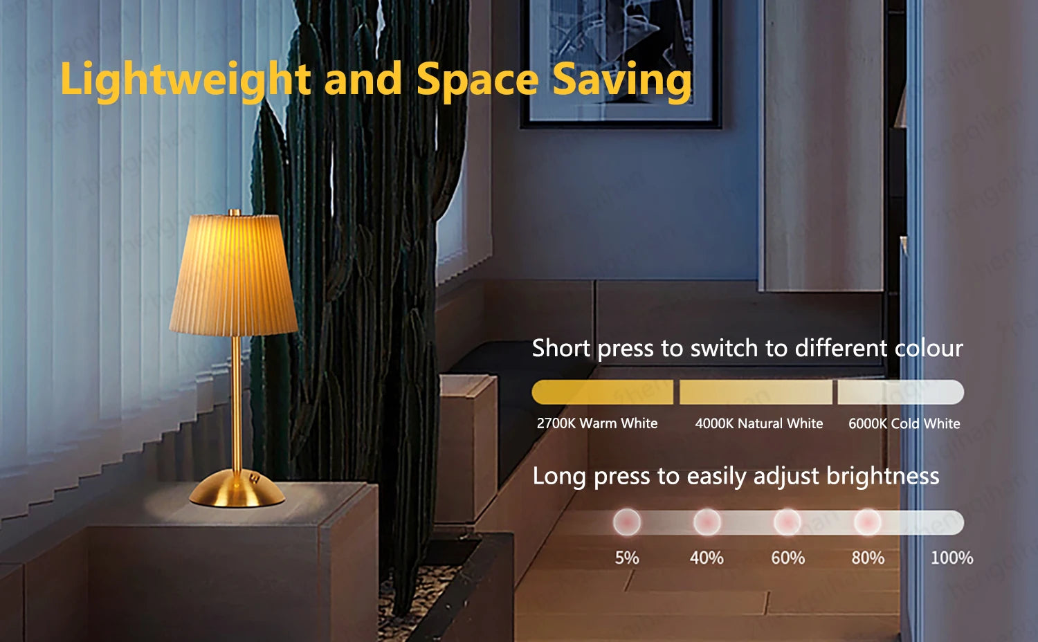 4.Built in rechargeable battery, suitable for bedroom, bedside table, office, restaurant, bar, hotel, outdoor terrace lighting, etc